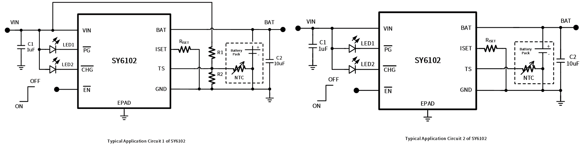SY6102 also have an internal reverse current blocking. Additional, SY6102 contains an internal control loop that monitors the junction temperature and reduces the charge current if an internal temperature exceeds threshold.