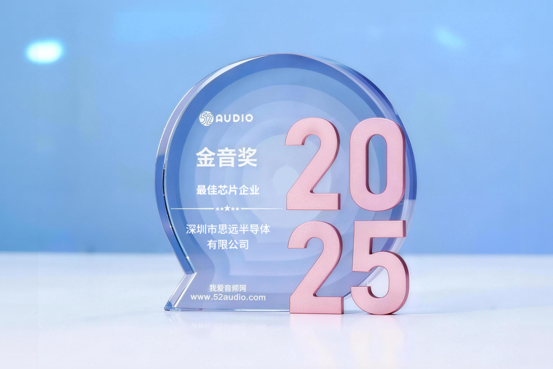 近日,由 52audio 我爱音频网主办的 2025 年度金音奖评选结果正式揭晓。深圳市思远半导体有限公司凭借在电源管理芯片领域的深耕创新、国产化突破及广泛市场认可,成功摘得最佳芯片企业大奖。